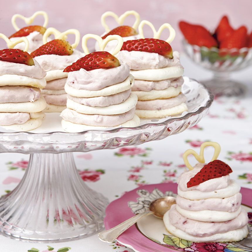 Drömbakelser – den perfekta desserten med krispiga maränger varvade med krämig jordgubbsgrädde och vit choklad på toppen. Här finns receptet.