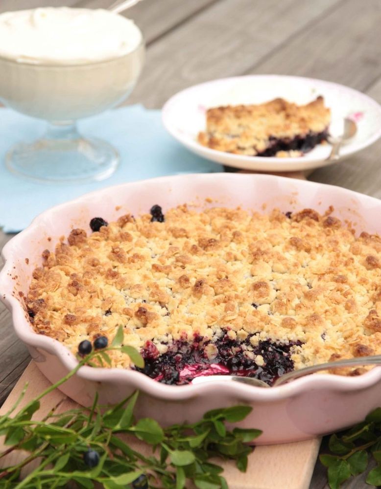 Finns det något godare än en bra smulpaj? Och med blåbär dessutom. Mums. Här finns receptet.
