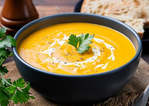 En smidig och god soppa på kokta mixade morötter, grönsaksbuljong och en skvätt grädde.
