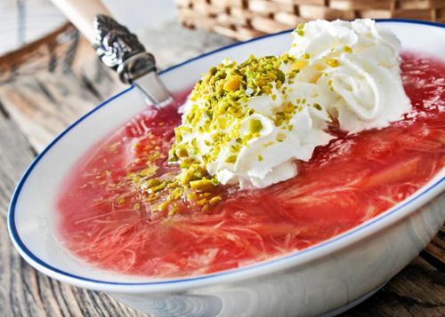 Koka en ljuvlig rabarbersoppa och servera den med en klick vispad grädde och hackade pistagenötter.