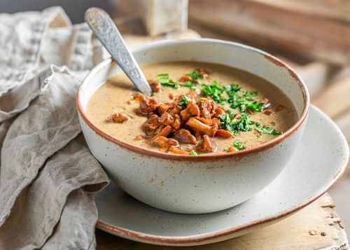 En busenkel kantarellsoppa på grädde och vitt vin – lättare blir det inte att njuta av skogens guld!