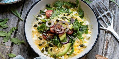 God, nyttig och enkel att laga. Snabb omelett med avokado, feta och rucola är en hälsosam toppenlunch.