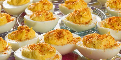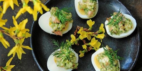 Inget påskbord utan ägghalvor – här toppas dem med en god och krämig räkröra