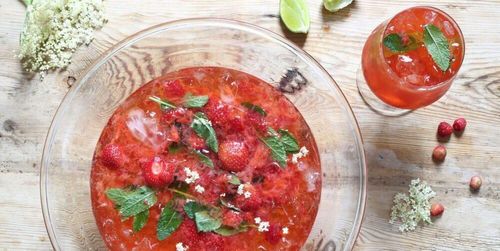 Bjud gästerna på en alkoholfri bål med jordgubbar och mynta. Perfekt till midsommar – och funkar lika bra som drink.