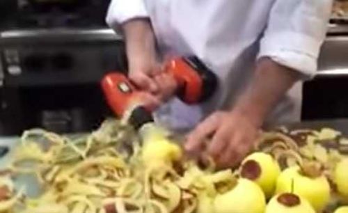 Tycker du att det är tråkigt att skala äpplen är det bara att ta fram de tunga doningarna. Här får du se hur en riktig hårding skalar äpplen i rekordfart.