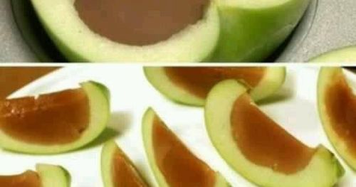 Knäckäpple på nytt sätt! Häll knäcksmet i ett urgröpt äpple i stället för att doppa äpplet i smeten. När knäcken nästan stelnat, skär upp äpplet i klyftor.