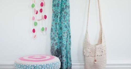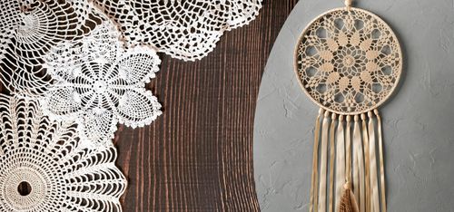 Släng inte gamla, virkade dukar. De kan bli fina drömfångare.