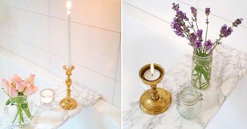 Förvandla ditt badrum till ett avkopplande spa. En bricka över badkaret med tända ljus och blommor skapar rätt stämning.