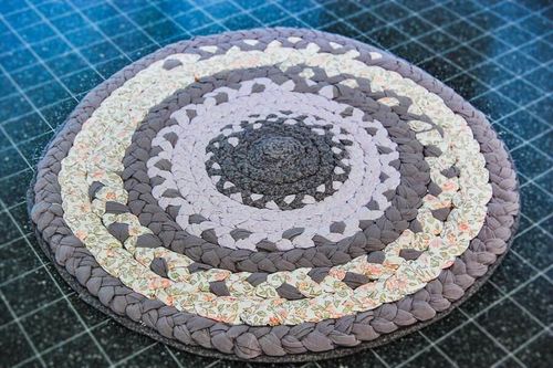 En flätad matta ger en hemtrevlig känsla i badrummet. Själva flätandet är enkelt, monteringen tar lite längre tid och energi, men det är det värt eftersom du får precis de färger och mönster du själv vill ha!
