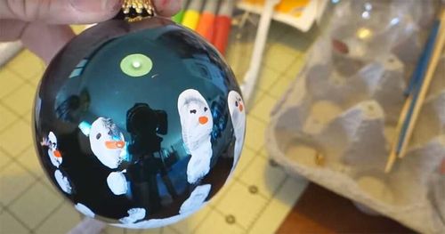 Pynta gamla julkulor, använd barnens fingeravtryck och gör gulliga snögubbar!