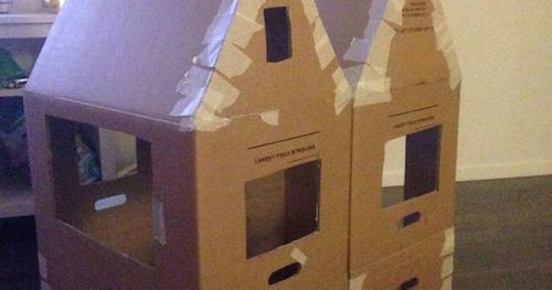 Vilken fantastisk mamma! Med flyttkartonger och färg byggde Emelie en pepparkakskoja till sin son Lennon.