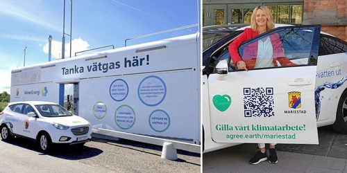 Kan det bli mer klimatsmart? Mariestad blir först med att tanka egen vätgas - gjord av solenergi och vatten!