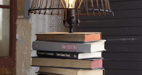 Stilfull och maffig lampfot av tunga gamla romaner. Det gör inget om de är lite patinerade, det gör bara lampan ännu snyggare.