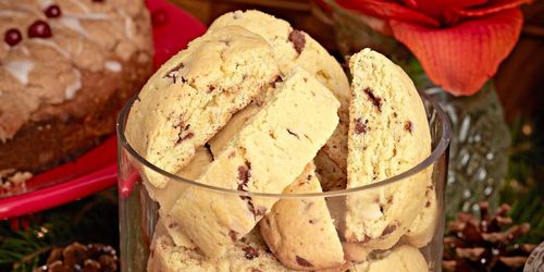 Skorpor med mörk choklad och mandel får julig smak av saffran.