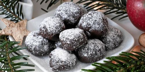 Hemgjorda chokladtryfflar smaksatta med mint blir ett trevligt vuxengodis på julbordet.
