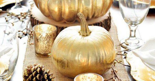 Ibland är det tillåtet att leka med maten. Gå loss med en guldfärg på sprejflaska och små pumpor och skapa lyxpynt till höstmiddagen.