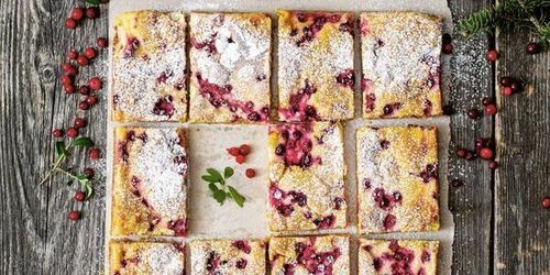 En härlig sommarkaka som också fungerar som dessert: Blåbärsrutor! Perfekt om du har blåbärsris runt husknuten. Servera gärna med lättvispad grädde.