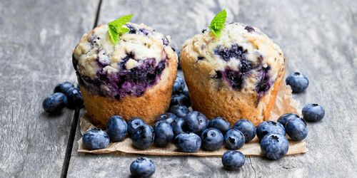 Blåbärsmuffins och ett glas mjölk – det är lycka. De här muffinsarna har dessutom en smaskig topping som kommer göra dig beroende!