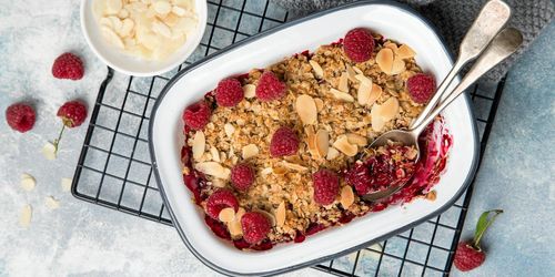 Smulpaj är bland det enklaste och godaste man kan göra i bakväg. Hallon är sött och gott under det knapriga täcket!