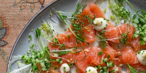 Rimmad lax med citronmajonnäs på fänkålsbädd