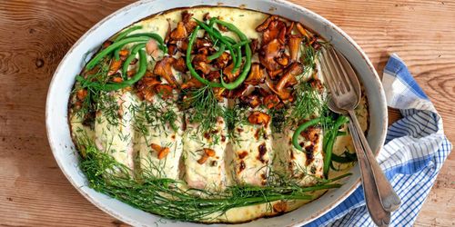 Rimmad torskrygg med spetskål och senapssås. Anna Billing bjuder på härligt recept på danskt kalasmat.