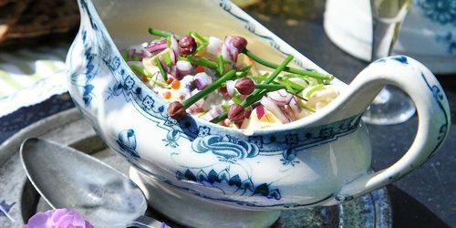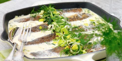 Här får favoriten strömming gott sällskap av en örtig sås med kaviar och grädde.