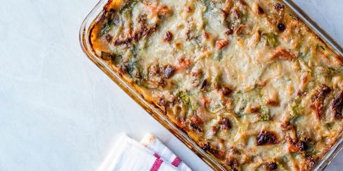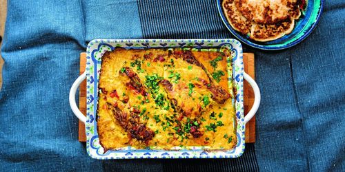 Det är något speciellt med mat som kan tillagas i en stor ugnssäker form och toppas med smakrik riven ost. Det här receptet kommer bli en favorit!