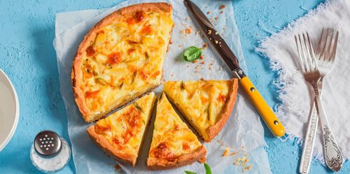 En vegetarisk paj med äggstanning och grönsaker efter eget tycke och säsong.