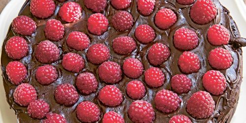Vanvettigt god hallon- och chokladkaka.