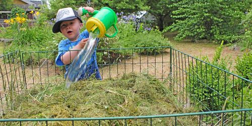 Du behöver en grep, ett kompostgaller, vatten och en hel massa gräsklipp.