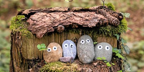 Glada, gula gubbar, monster eller små ögonstenar. Måla gulliga stengubbar med barnen.