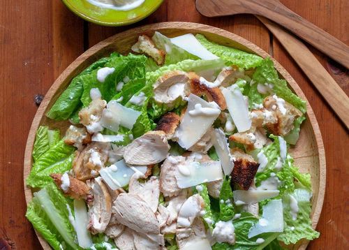 En klassisk caesarsallad med en liten twist är perfekt bjudmat på grillfesten.