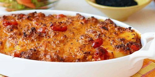 Lammfärs har en smak och fetthalt som lämpar sig utmärkt till pastagratäng. Här gör även två smakrika ostar sitt för att skapa en vardagsfavorit!