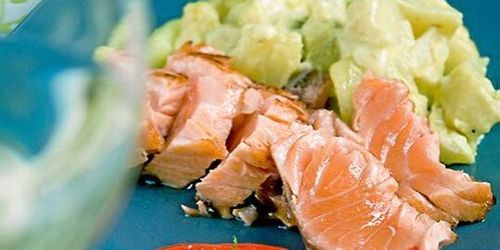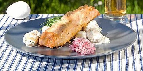 En sallad på färskpotatis inspirerad av Janssons Frestelse. Fin lax inbakad i god ost blir bästa tänkbara sällskap.