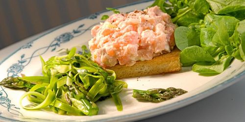 En lätt och elegant förrätt där smakerna samspelar exakt! Hittar du inte späd sparris, klyv lite grövre på längden.