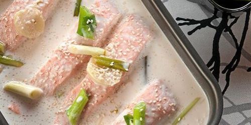 Ingefära, lime och kokos sätter asiatisk finess på laxen. I stället för ris bjuder vi sesamkryddade grönsaker till. Lättlagat och fräscht!