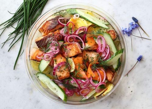 Laxpudding är en underbart god allt i ett-rätt. Du varvar ingredienserna i en ugnsfast form och skjutsar in i ugnen. Där sköter den sig själv i en timme.