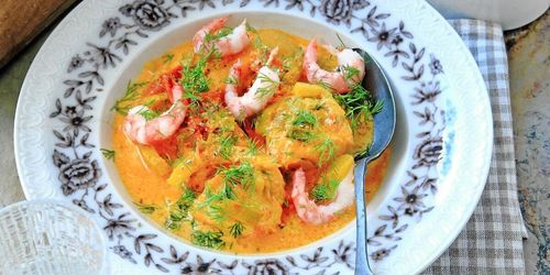 Denna gryta på lax och saffran är värmande bjudmat för långa myskvällar med familj och vänner.