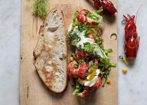 Kräftor av godaste slag i godaste och lyxigaste mackan. Den här äter du inte ofta men när du gör det - wow!