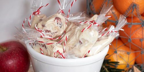 Mandel och tranbär är en riktigt fin kombination i denna hemgjorda vita fudge.
