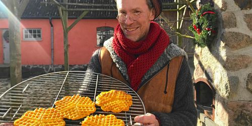 Här bjuder Gustav Mandelmann på sitt favoritrecept: Frasig gyllengul saffransvåffla!
