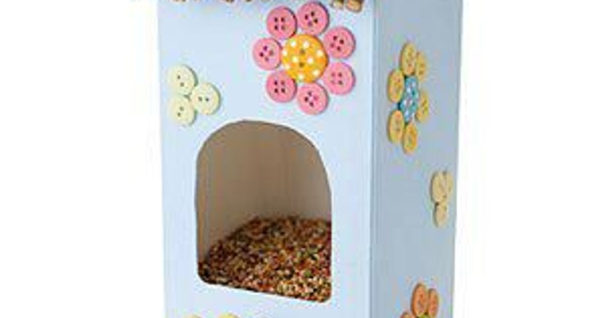 Ett mjölkpaket kan med enkla medel förvandlas till en smart fågelmatare.