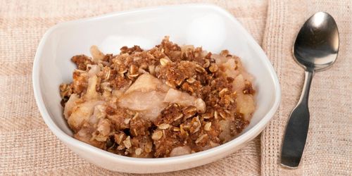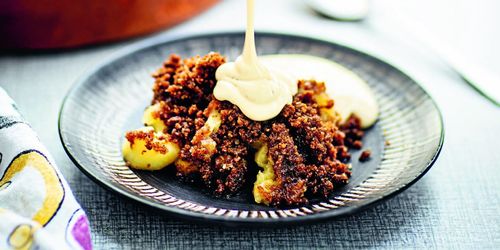 Oemotståndlig smulpaj med smörstekt kavring och äppelmos!