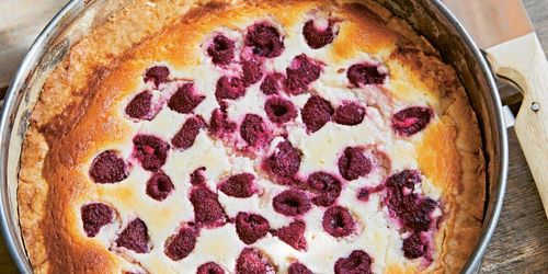 Tarte är ett finare, franskt namn på en kaka eller paj med söt fyllning. Här är det färskost och hallon som står för härligheten. Mums till kaffet.