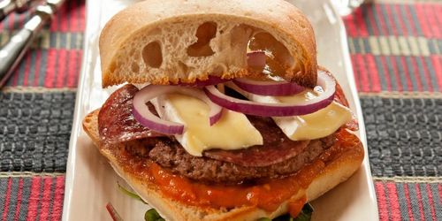 En festligare, USA-inspirerad variant på hamburgare, där en hemgjord tomatsås förgyller smaken.