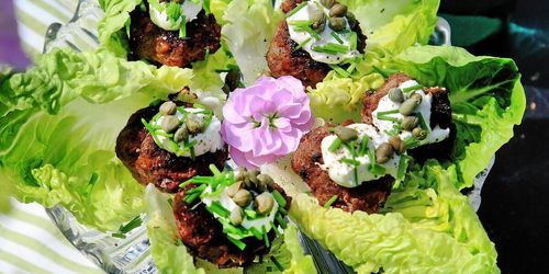 Toppa biffarna med en klick pepparrotskräm och strö på gräslök och kapris.