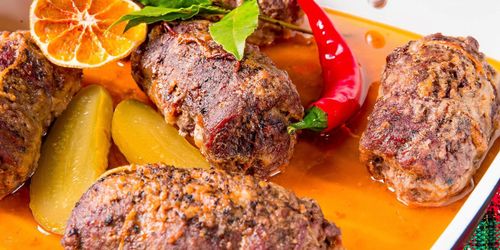 Kalasbiffar på köttfärs som lindas i bacon är en klassiker från förr. Servera dem med ris och en god grönsallad.