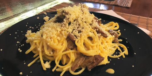 Den klassiska pastarätten med ett vegetariskt alternativ till bacon.
