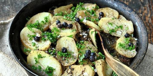Klyftpotatis på bakpotatis som passar lika bra till fågel, fisk och kött som till en vegetarisk gryta.