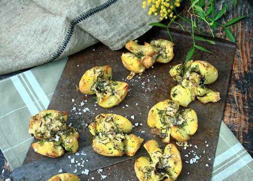 Krossad, örtgratinerad potatis är lika enkelt som gott. Potatisen kan förberedas i god tid och gratineras vid servering.